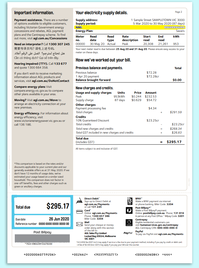 • Your NMI (National Metering Identifier) — usually found on page two of your bill
